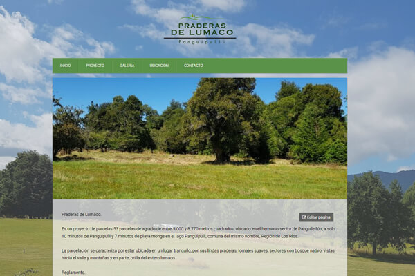 Praderas de Lumaco es un proyecto de 53 parcelas de agrado de entre 5.000 y 8.770 M2, nos contactó para desarrollar todo su sitio web para dar a conocer sus Servicios.